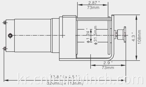 전체 치수 : 12.8″ x 4.5″ x 4.3″