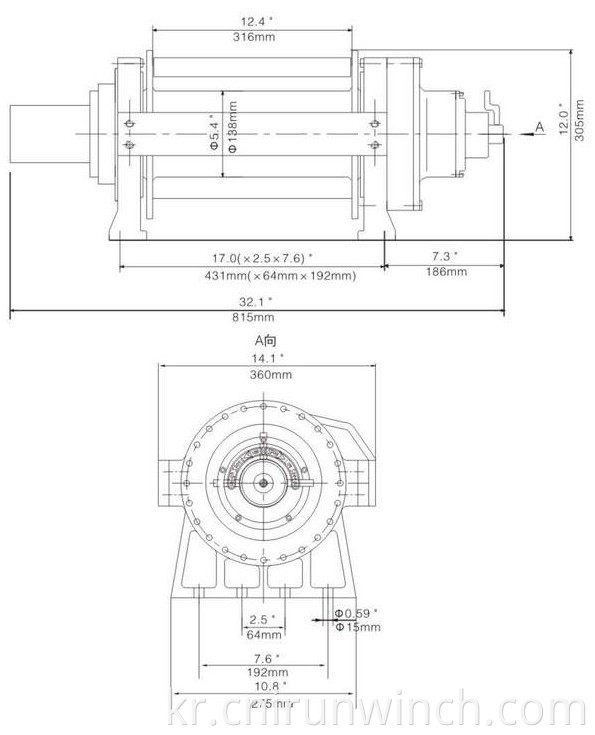 이 윈치는 수동 클러치로 20,000lb 당김 용량을 가지고 있습니다. Automatci 나사 멀티 디스크 브레이크가 장착되어 있습니다.