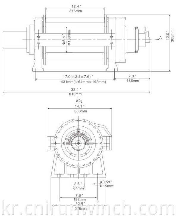 7. 장착 볼트 패턴: 17.0″x2.5″x7.6″(431mmx64mmx192mm)8-M14